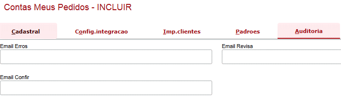 - A auditoria é um processo muito importante, pois possibilita o monitoramento da integração via e-mail, avisando aos responsáveis por esta, caso ocorra qualquer problema. Basta preencher os campos com o E-Mail do responsável por cada assunto.
