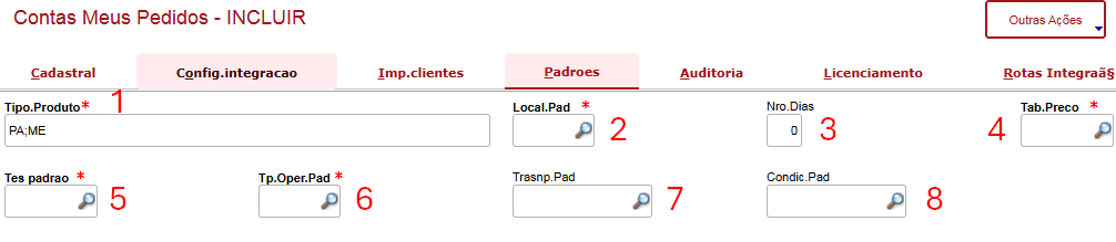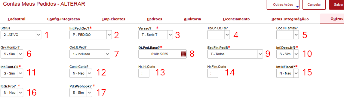 - Define se deverão ser integrados pedidos base.