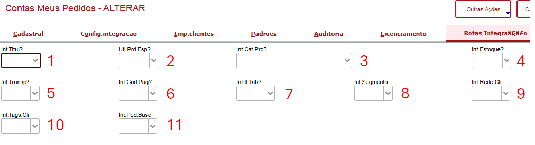 - Define se deverão ser integrados os pedidos de orçamento.