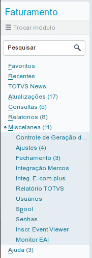| Módulo | Faturamento → Miscelânea |